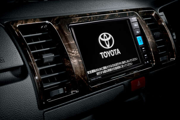 *1.レーダークルーズコントロールシステムの機能は搭載されていません。■写真はVAN・2WD・2800ディーゼル・標準ボディ・スーパーGL。ボディカラーのホワイトパールクリスタルシャイン<070>はメーカーオプション。アルミホイール、パノラミックビューモニター、LEDヘッドランプはメーカーオプション。■写真はToyota Safety Senseのイメージです。