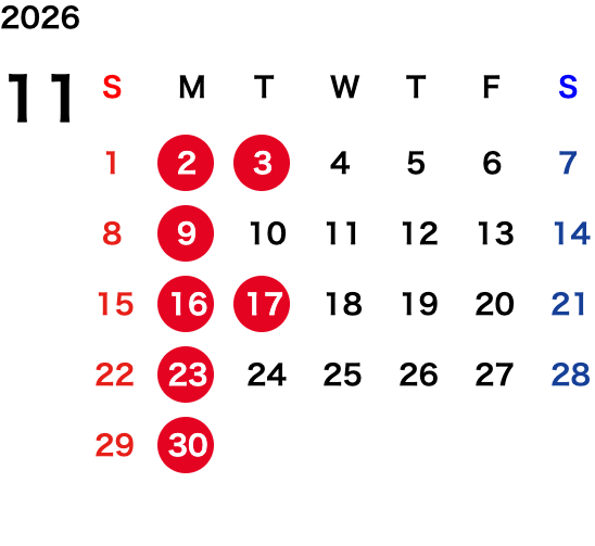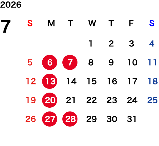 毎週月曜日、不定期月曜日・火曜日連休