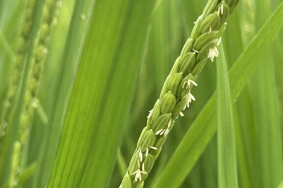 田植えから約80日。福島トヨタンボの稲は順調に出穂、ところどころで開花も始まりました。